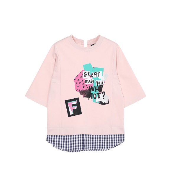밑단 셔츠배색 레이어드디테일이 유니크한 티셔츠제품입니다