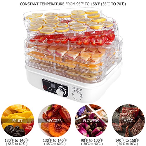 DIGITAL THERMOSTAT - easily adjustable between 95 to 158 degrees Fahrenheit. Dry food effortlessly on a constant temperature. Use as a meat dehydrator for beef jerky or for fruit, vegetables and herbs.