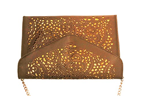 - Features: Flower Hollow Out design with beautiful vintage floral pattern,trendy and durable; zipper pocket inside.With a detachable chain can be used as a shoulder bag,handbag,clutch;
