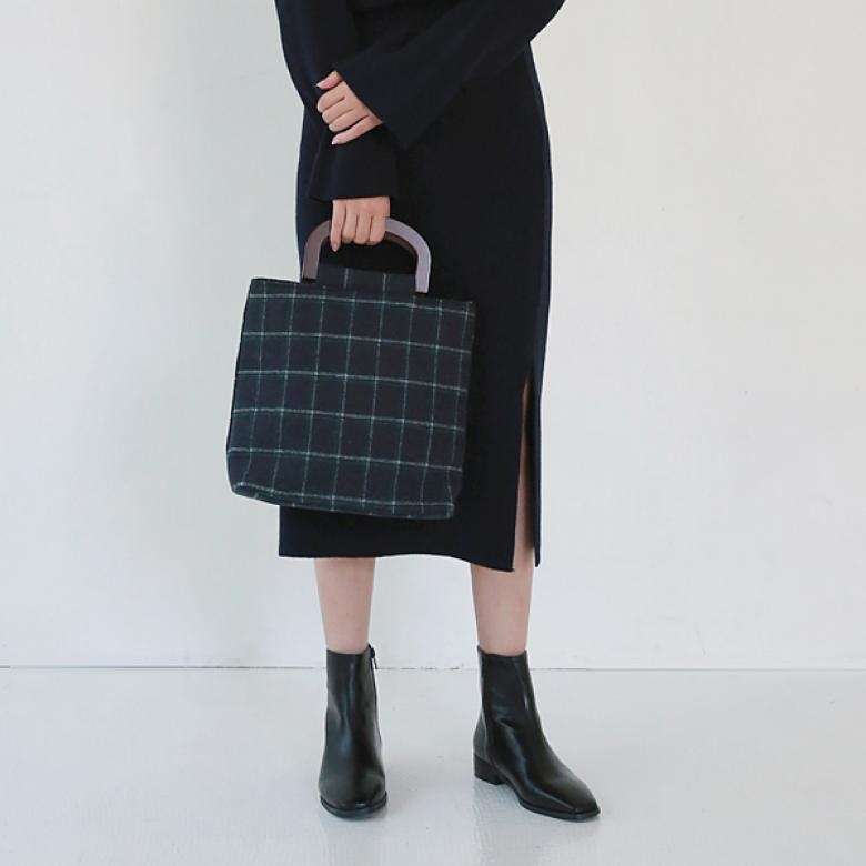체크 패턴이 더해진 펠트 소재로 가볍고 따뜻한 느낌을 주며 우드 핸들로 포인트를 주었습니다. 탈부착 가능한 크로스 끈이 포함되어 다양하게 활용하실 수 있습니다. 내부 공간이 넓어 다양한 아이템을 소지하기 좋습니다.