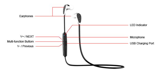 We put the most used functions (adjust volume, skip tracks, power, and phone functions) in easy reach. With up to 5 hours of play time between charges, don't worry about charging often, but when you do, the clip-on charger does the job with ease.