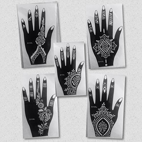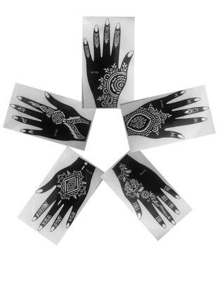 Pack of 5 LEFT UPPER PART OF HAND AS SEEN IN VOGUE Indian ArabianTattoo Patterns Reusable Stickers LAMINAU Stencils