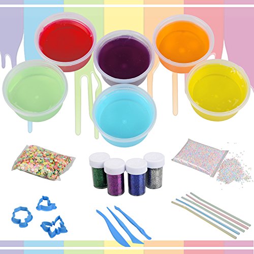 ▶ Magic Clear Crystal Slime: Do not baked, it is very soft, bright color, and looks like jelly, feels like soft ice, can fully meet kids strong curiosity, can be arbitrary mixed color, easy modeling and DIY, non stick hands, easy to clean, ideal toy gift for kids
