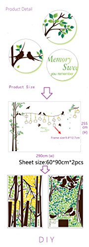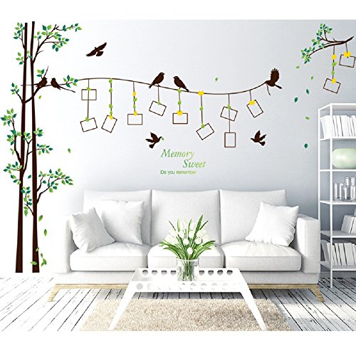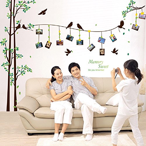 -. Title : Amaonm® Giant Large Family Photo Tree Wall Decal Decor Birds Tree Branches & Lettering Memory Wall Stickers Murals for Bedroom Living room, 12pcs Frame, size:114"(w) x 81"(h)