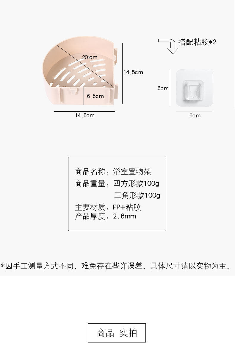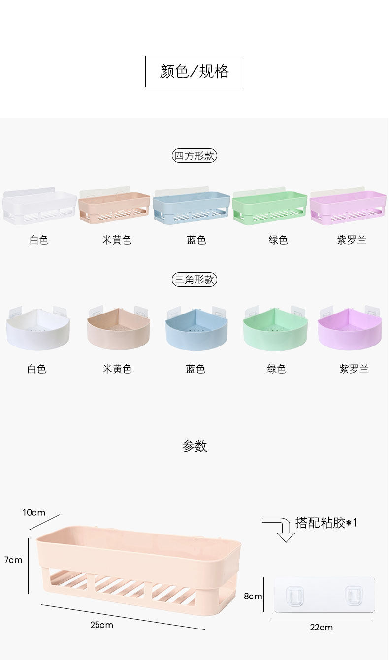 2个装免打孔浴室卫生间置物架墙上壁挂层架洗手台吸盘整理收纳架