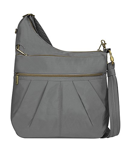 When planning your next adventure don't think twice about being pickpocketed with this bag you get 3 locking compartments. Slash-proof construction, adjustable, cut-proof shoulder strap which attaches to post or chair the main compartment has RFID blocking card and passport slots and the rear zip pocket includes tethered key clip with LED light. For more than 35 years, Travelon has been making travel easier and safer with products that provide protection, peace-of-mind, safety, security and organization. Travelon's Anti-Theft Cross body and travel bags protect from pickpockets and thieves and are customer top rated. Classic silhouettes in soft fabrics provide great function and fashion.Feature