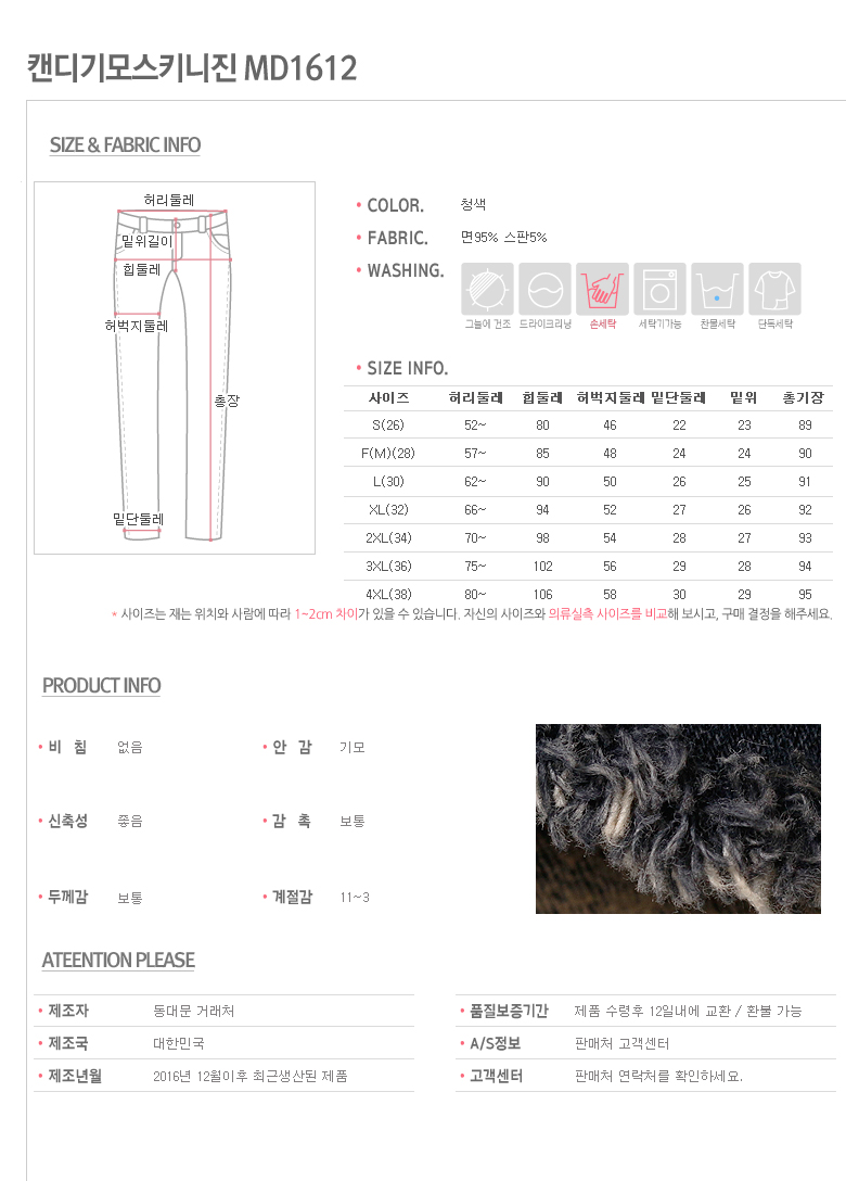Big size Candy brushed skinny jeans MD1612 Cotton