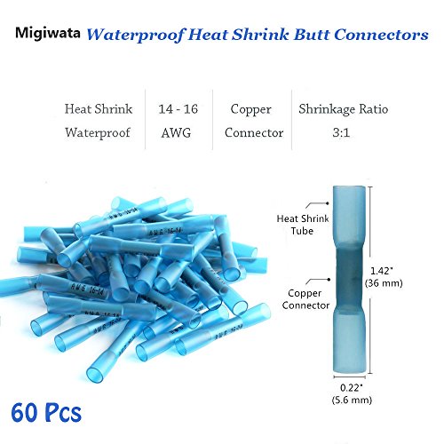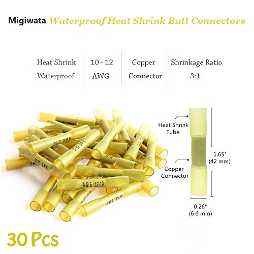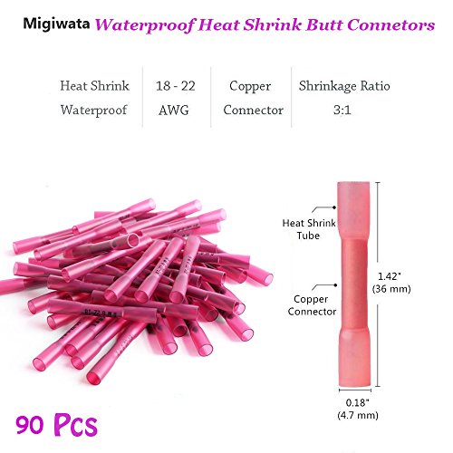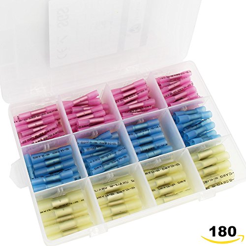 Migiwata Heat Shrink Electrical Wire Butt Connectors Marine Grade Waterproof Insulated Auto Wire Solder Terminals Kits of 180PCS