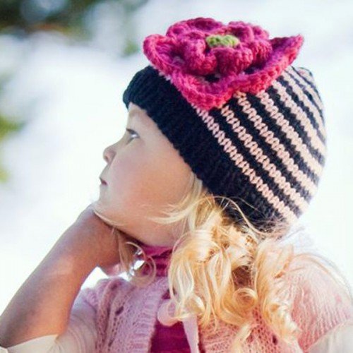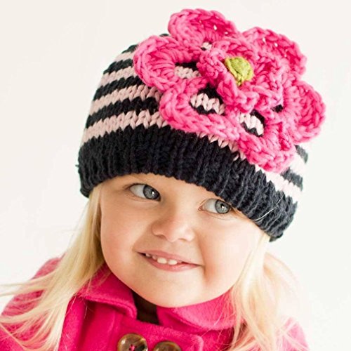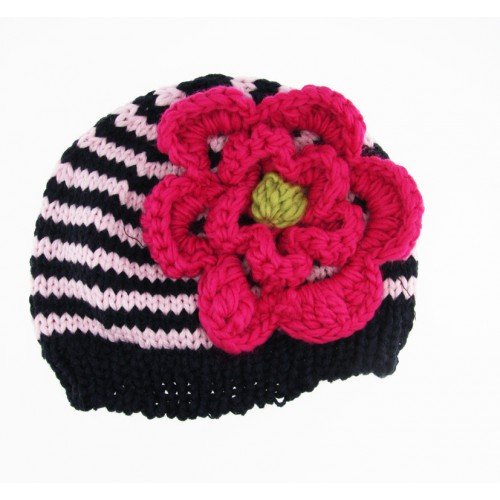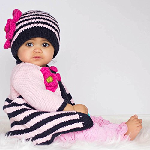 Huggalugs Baby and Toddler Girls Striped Flower Beanie Hat in 8 Color Choices