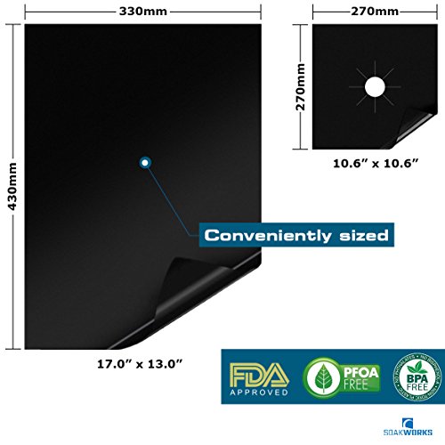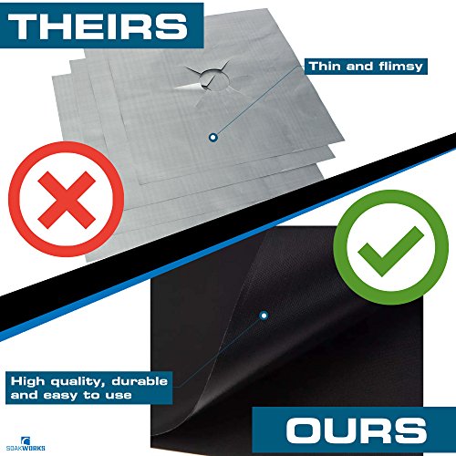 - ✅ INSTALLATION IS FAST AND EASY - On your stove top, simply place one protector under each burner. Place one large mat or several side by side inside your oven, microwave or on your BBQ and stop those nasty spills and drips from getting into those hard to clean places. Unlike other paper-thin products, ours do not warp, wrinkle or crease.