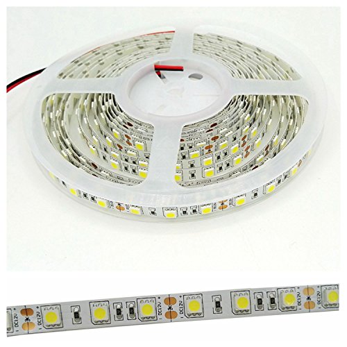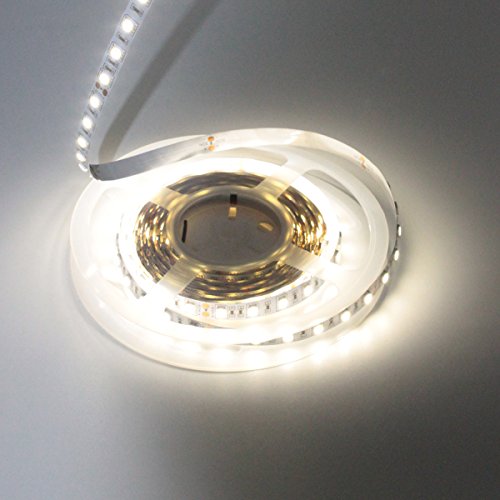 LEDMY Flexible Led Strip Lights UL(E477884) DC 24V 72W SMD5050 300LEDs IP20 Not Waterproof Led Tape Light Daylight White 4000K 5Meter/ 16.4Feet Using for Gardens, Homes, Kitchen, Car and Bar