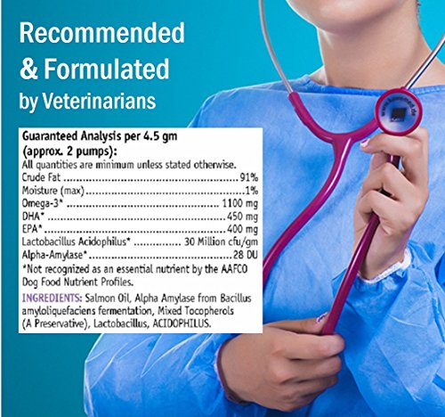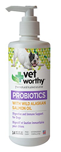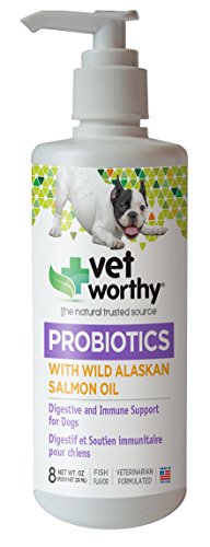 Vet Worthy Probiotics w/ Wild Alaskan Salmon Oil for dogs provides digestive and immune support for dogs.