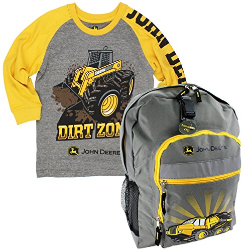 -. Brand : Yankee Toy Box -. Color : Bob & Teddy Blue -. Department : teens -. Feature : Set includes a long sleeve tee and a 16" backpack / Backpack measures approximately 16" x 13" x 5" / Backpack: Adjustable padded shoulder straps; Hanging locker loop; Zipper closure; Mesh side pockets; Lunch box clip; Front zip-up pockets / Shirt: Taped ribbed-knit collar, Double stitched hems; Screen printed graphics; Tagless / Features John Deere Tractor Construction images -. PackageQuantity : 1 -. ProductGroup : Apparel -. ProductTypeName : LAGE -. Size : 10 Inches -. Title : John Deere Little Boys Long Sleeve Tee and 16 inch Backpack Set