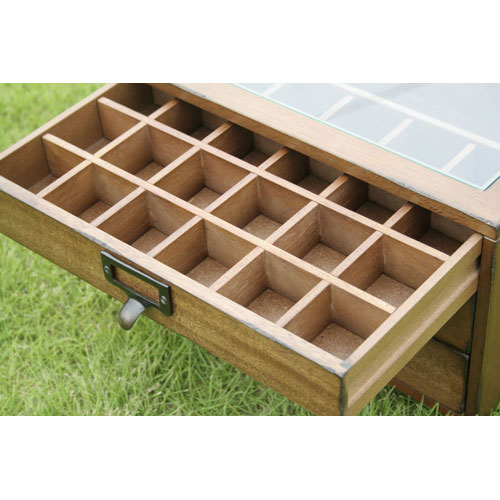 ●天然木(バユール材)、引出し底板と側板=天然木化粧繊維板(MDF)、仕切り板:繊維板(MDF)、生ガラス:4mm厚