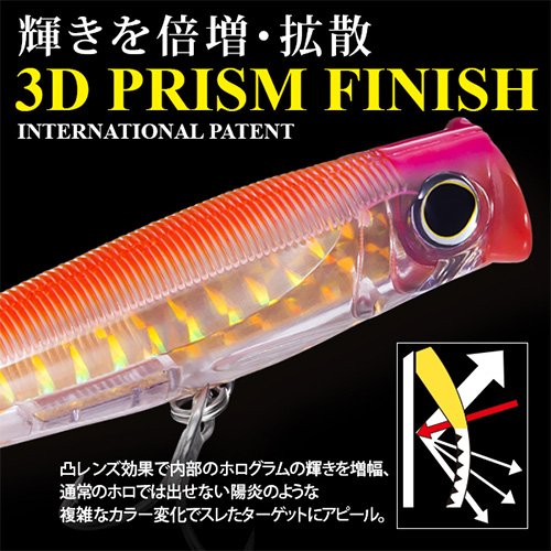 Studio : Yo-Zuri America, Inc. Publisher : Yo-Zuri America, Inc. Binding : Sports Product Description Yo-Zuri is proud to announce the introduction of the new and improved 3D Popper. This compact topwater Popper features a extra wide mouth which causes a very large splash which draws fish in from long distances. Perfectly weighted for long distance casting, the 3D Popper is an ideal lure for surf fishing for Striped Bass, Bluefish, Jack Crevalle and Roosterfish or for casting to Tuna or Dorado from the boat. Yo-Zuri has upgraded the new 3D Popper with a durable polycarbonate body, through wire contraction and 3X strong treble hooks to give it the durability to handle any trophy inshore or offshore fish. This bait comes in eight 3D colors and two sizes to cover a variety of species and fishing conditions. 0