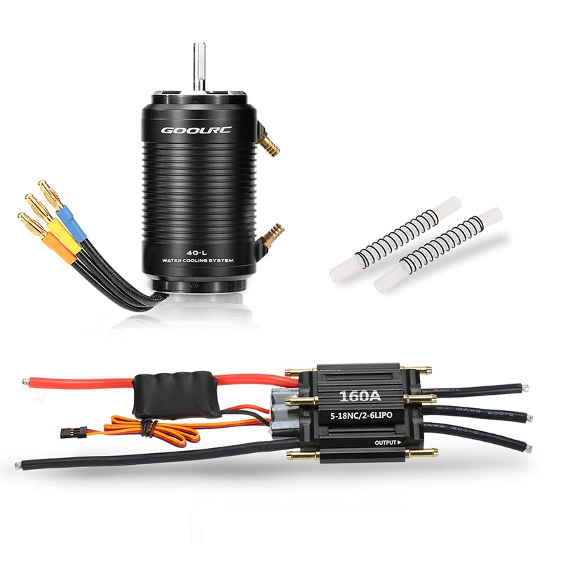 This set includes a 4092 1250KV brushless motor with 40-L water cooling jacket and a 160A waterproof brushless ESC, they specially designed for 1000mm (or above) RC boat. This motor is made of high quality aluminum alloy and produced by CNC milling machines. With its high rotation speed, it can let your boat runs more powerful and faster. This ESCcan provide 160A continuous current. With its high performance, it can better control of the motor's work. Besides, it can also provide power for the receiver with 5.5V/3A BEC. If you love your RC boat, then never miss them, they can make your boat more powerful!