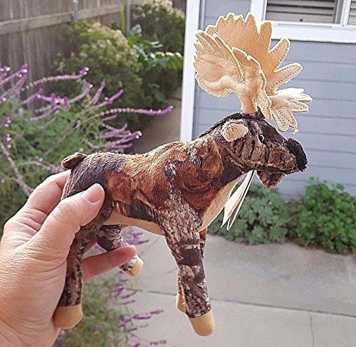 Brown Moose with licensed Mossy Oak Break-Up pattern soft fabric Measures 7 inches tip-to-tip (approx 14 centimeters)
