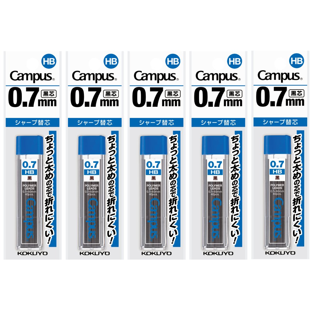 ポリマー芯を採用した書き心地の良いシャープ替え芯です。 【芯径】 0.7mm 【長さ】60mm 【芯濃度】 HB 【1個当たりの入り数】 40本 【パック数】 5個パック 【芯】ポリマー芯