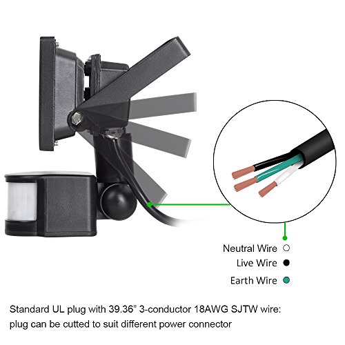 Motion Sensor Flood Light, LTE 10W Waterproof PIR Sensor Security LED Lights, 6000K, 760 Lumen Specification: Wattage: 10W