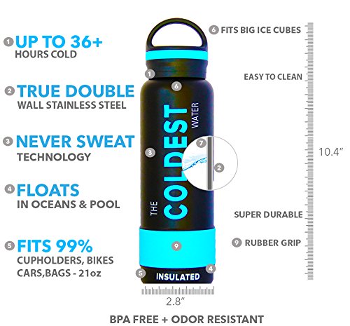THE COLDEST WATER BOTTLE - Seriously Cold up to 36 Hours or More! Built with True Stainless Steel, Double Wall, Vacuum Sealed