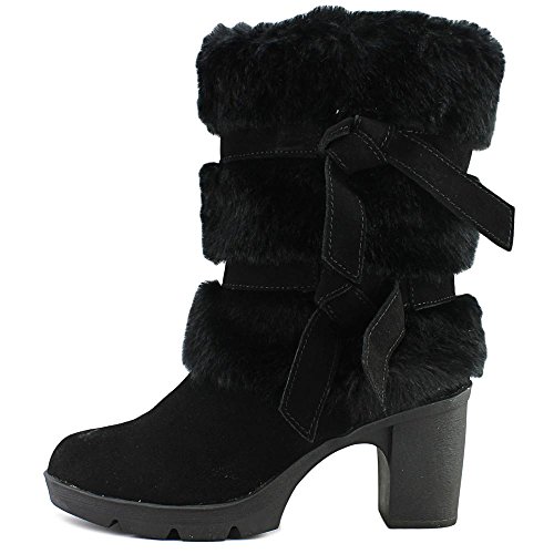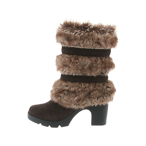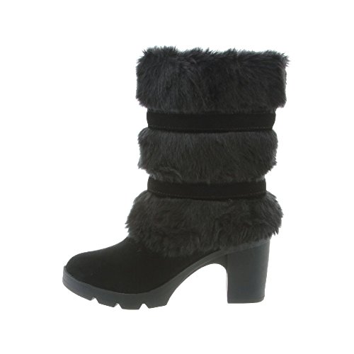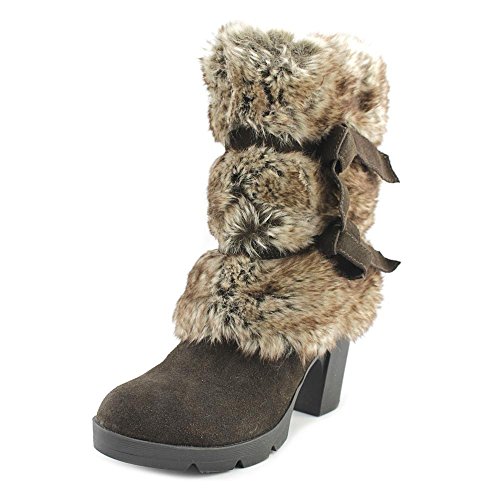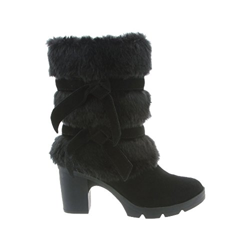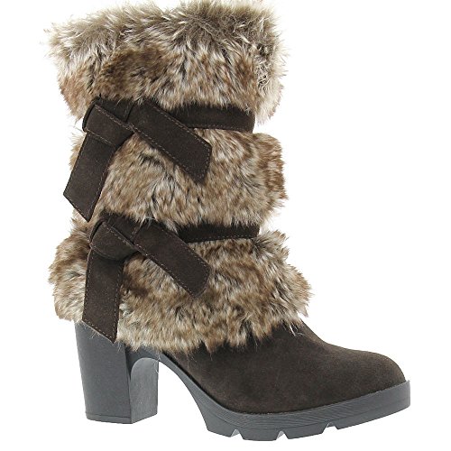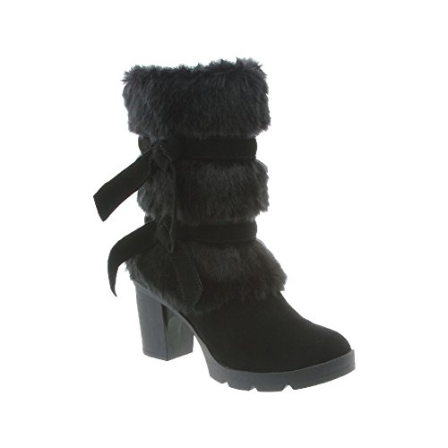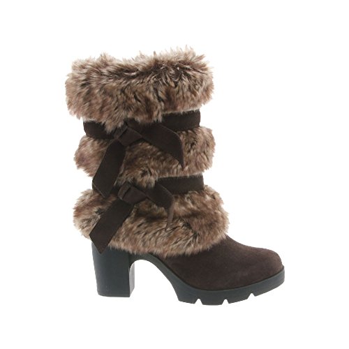 Studio : Bearpaw Publisher : Bearpaw Binding : Apparel Product Description Add some sass to your style with a 7.5 inch suede and faux rabbit fur shaft boots with decorative bow accents. They are elevated on a 3 inch block heel with a flexible and durable rubber outsole. Bridget boots are a great addition to your winter wardrobe. They also feature sheepskin footbed and wool blend lining. Material: Suede, Faux Rabbit Fur, Sheepskin Fur, Rubber. 0