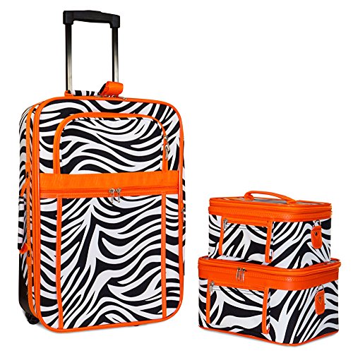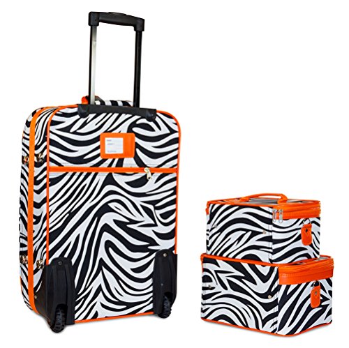 The luggage case is carry on size and easily fits in the overhead compartment of a plane. Never lose your boarding pass, ID, or other smaller items with its 2 front exterior zipper pockets. Its fashionable design makes it an ideal choice for transporting gear for dance teams and cheer squads, too!