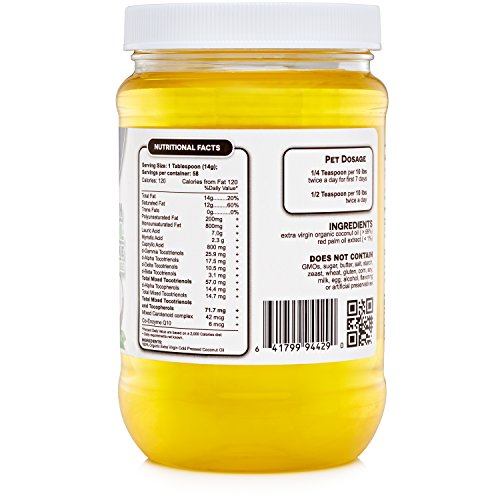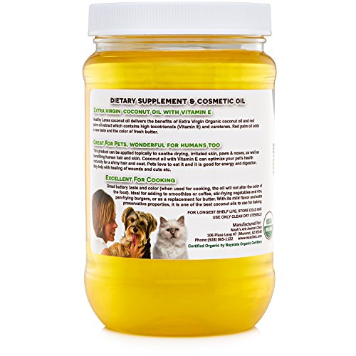 -. Feature : Our oil contains NO sugar, salt, starch, yeast, wheat, gluten, corn, soy, milk, egg, alcohol, artificial favoring or preservatives. / High levels of vitamin E (tocotrienols) and Carotenes. / An EXCELLENT BUTTER replacement! / This is the All Purpose UPMARKET special Extra Virgin Organic Coconut Oil / Coconut oil with Vitamin E can optimize your pet's health naturally for a shiny hair and coat.