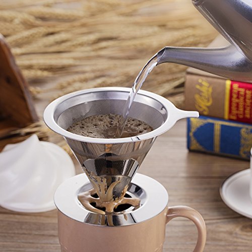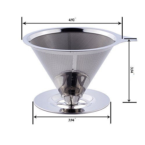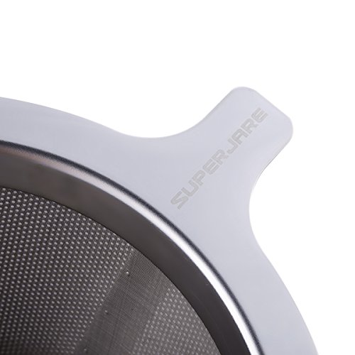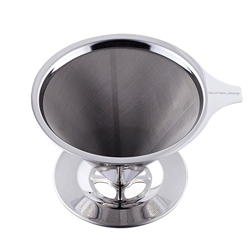 -. Brand : SUPERJARE -. Color : Stainless Steel -. Feature : Coffee Lovers' Choice - The perfect alternative to disposable paper filters, which absorb essential oils from your beans and grounds and rob your coffee of essential oils and nutrients. / Double Filter - Made from 18/8 Stainless Steel, which is of finest quality and highly durable, and can withstand high heats. No Plastic, No Paper. The Double Filter stops large particles and debris from marring your coffee experience. / Multi-purpose und Portable - Small, light and potable, so it is easy to take to go camping, hiking, backpacking etc. Easy to use. Fits on almost all sorts of coffee mugs, cups, drip pots or trays. For exact dimensions pls refer to the images / Reusable and easy to clean - The filter cone consists of tiny laser-cut holes and an ultra fine stainless steel mesh on top. ECO-FRIENDLY and sustainable. No more running out of paper filters. Cleaning is less hassle. Simply rinse well with warm water, or dishwasher is also safe. / A wonderful Gift - The Superjare fine craftsmanship makes it the perfect gift for all the coffee lovers in your life. -. Label : Superjare -. Manufacturer : Superjare -. PackageQuantity : 1 -. ProductGroup : Kitchen -. ProductTypeName : KITCHEN -. Publisher : Superjare -. Studio : Superjare -. Title : Superjare 1-4 Cups Reusable Stainless Steel Coffee Dripper 30105L