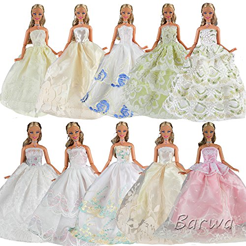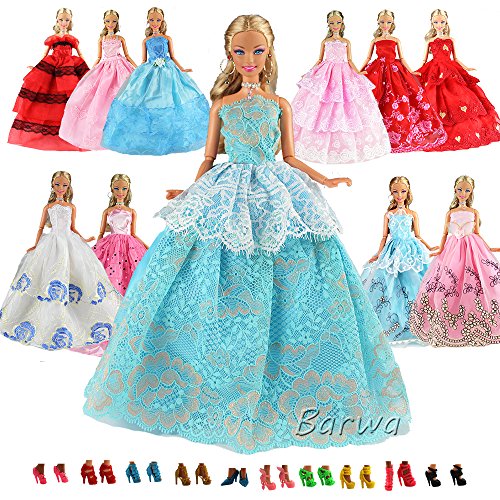 Barwa 15 Items = 5 Pcs Quality Fashion Dresses Clothes 10 Shoes for Barbie Doll GiftPackage Included:5pcs clothes dresses