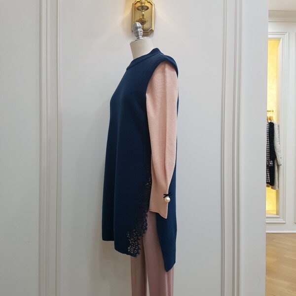 옆선의 레이스 배색이 여성스러우면서도 고급스런 느낌.