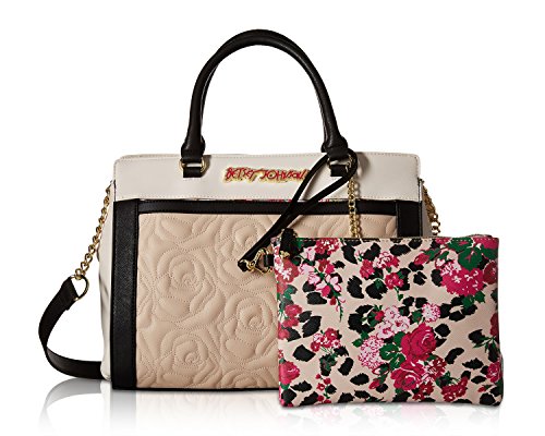Studio : Betsey Johnson Publisher : Betsey Johnson Product Description Double the style! with this satchel bag and coordinating wristlet pouch. Features Rose Quilted pattern with slip front pocket, zip closure complete with a detachable Contrast color Rose printed clutch that can be carried on its own or tossed inside the bag. 0
