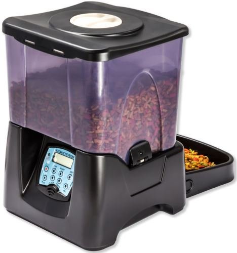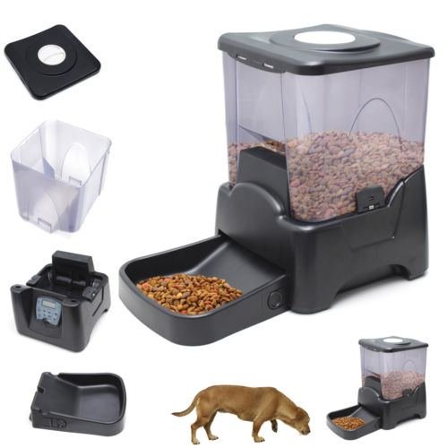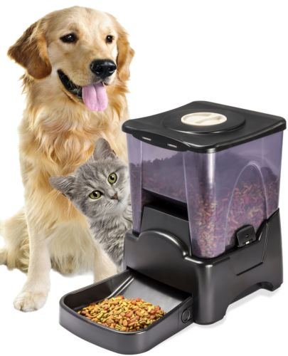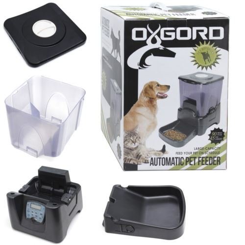 -. Binding : Misc. -. Brand : OxGord -. EAN : 0704740106120 -. Feature : Food Capacity: 45 Cups (90 meals) / Prevents accidental spillage / Keeps pets from overeating / Holds enough food for 90 meals / Unique anti-jamming feature / Translucent hopper shows food lever / Tamper-proof clasps on hopper / ½ to 5 cup portion sizes - user programmable / Alarm sounds when schedule expires / Record a personal message for your pet / Feed from 1 to 4 times a day / Hopper/bin and feeding-tray detaches easily from periodic cleaning / Smart sensor prevents overloading of feeding tray -. Label : USA -. Manufacturer : USA -. PackageQuantity : 1 -. ProductGroup : Pet Products -. ProductTypeName : PET_SUPPLIES -. Publisher : USA -. Studio : USA -. Title : New Automatic Pet Feeder Dog Cat Programmable Animal Food Bowl Auto Dispenser -. UPC : 704740106120