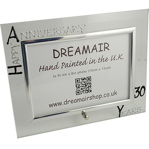 30th Pearl Year Wedding Anniversary Gift Photo Frame (L) (Black/Silver)