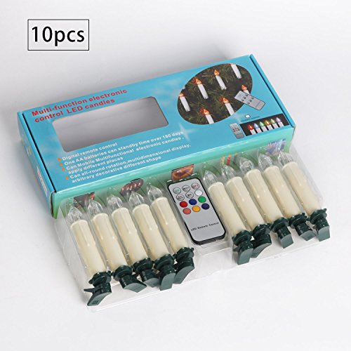 - Packing:10pcs Color Changing flicker led taper candles,10 clips and a 12-key remote