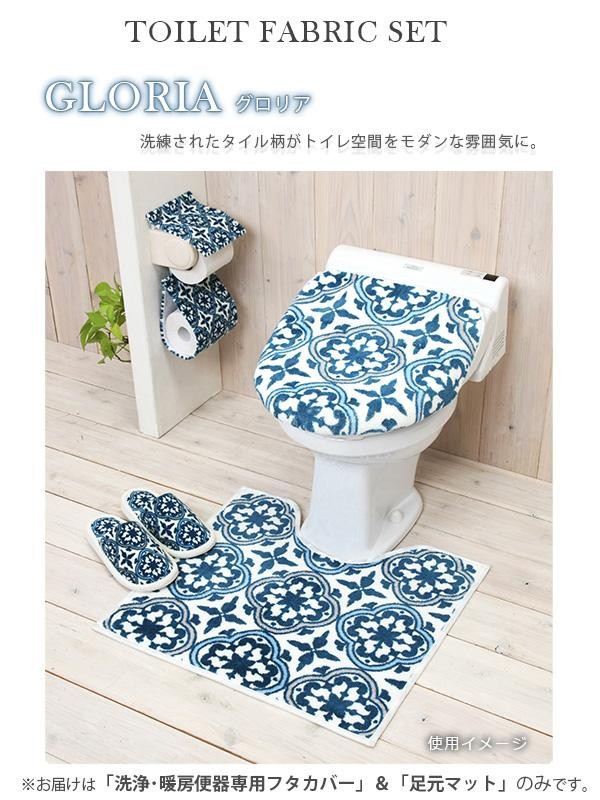 トイレファブリックシリーズ「グロリア」の洗浄・暖房便器専用フタカバー&足元マット2点セットです。