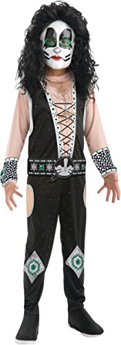 -. Binding : Toy -. Brand : Rubie's -. ClothingSize : Size small (4-6), medium (8-10), and large (12-14) -. Color : Black -. Department : boys -. Feature : Brand new Authentic licensed Kiss Standard Catman costume / Child Size Size small (4-6), medium (8-10), and large (12-14), approx ages 3-10. All measurements provided by Rubies and are approximate. If in doubt please purchase larger size and children will grow into it. / This posting includes: Jumpsuit with boot tops, belt and mask / Please note that only the items listed above are included -. Label : Rubies Costume Co -. Manufacturer : Rubies Costume Co -. MPN : RC884589 -. NumberOfItems : 1 -. PackageQuantity : 1 -. PartNumber : RC884589 -. ProductGroup : Toy -. ProductTypeName : TOYS_AND_GAMES -. Publisher : Rubies Costume Co -. Size : Small -. Studio : Rubies Costume Co -. Title : KISS The Catman Kids Costume