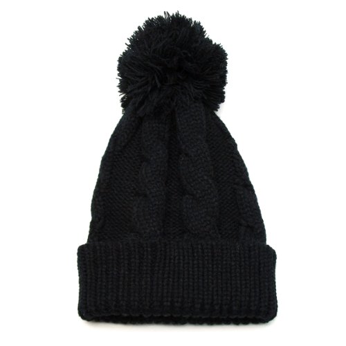 원본상품명: (トライバル)TRIBAL 長めの筒丈でアレンジ自由自在 キュ?トなシルエット ケ?ブル編みBIGポン付きニット帽 ブラック