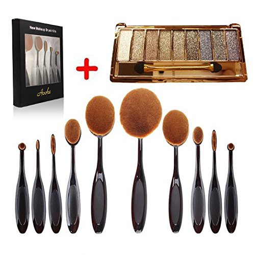 Make up brush set , Aooher Professional Soft Oval Toothbrush Makeup Sets and 9 Color Glitter Eyeshadow Palette Kit With Mirror