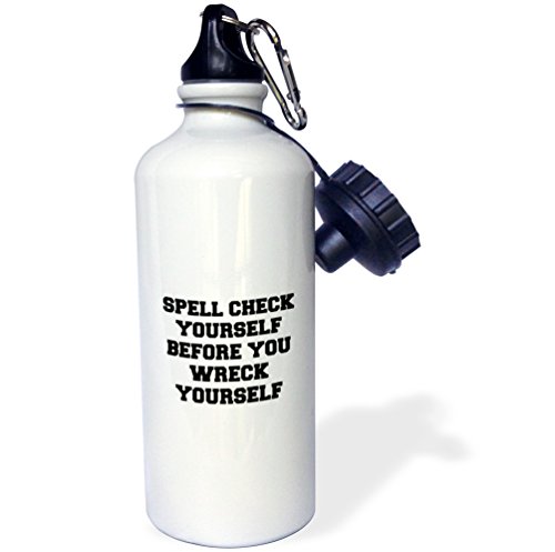 3dRose wb_183642_1 "Spell check yourself before you wreck yourself" Sports Water Bottle, 21 oz, White