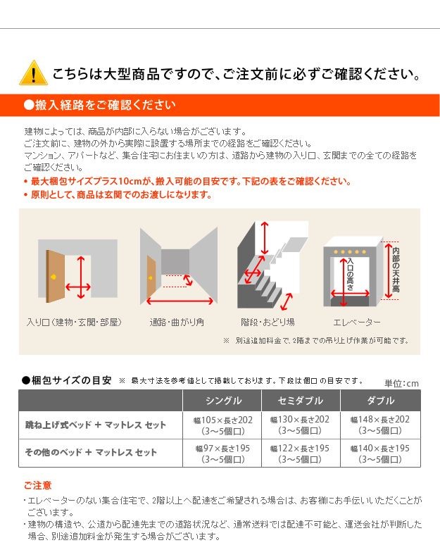 ●商品サイズと設置場所、搬入経路のご確認をお願いいたします。