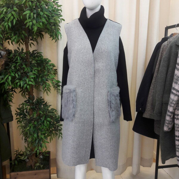 멜로디가든 여성복 2017년 겨울신상품 기본 라운드 모직 롱 베스트입니다 기본 그레이 컬러감에 주머니 털 포인트로 정장이나 캐쥬얼하게 어디든 매치하기 좋은 상품입니다 핏감도 툭 떨어지는스타일입니다