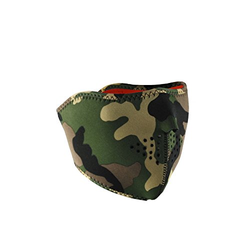 -. Title : Zan Headgear WNFM118HHV, Half Mask, Neoprene, Woodland Camo Reverses to Hi-visibility Safety Orng