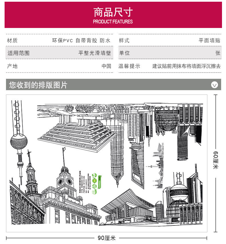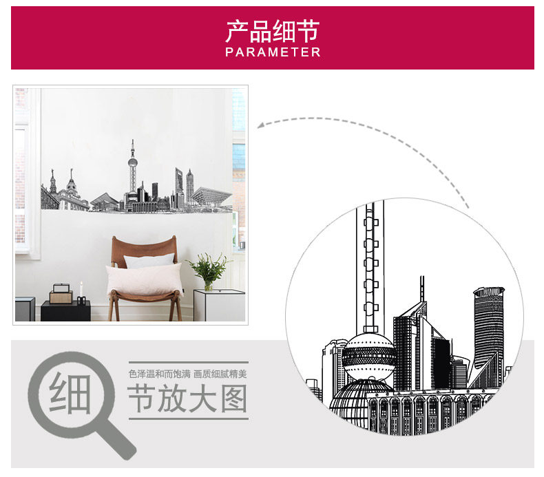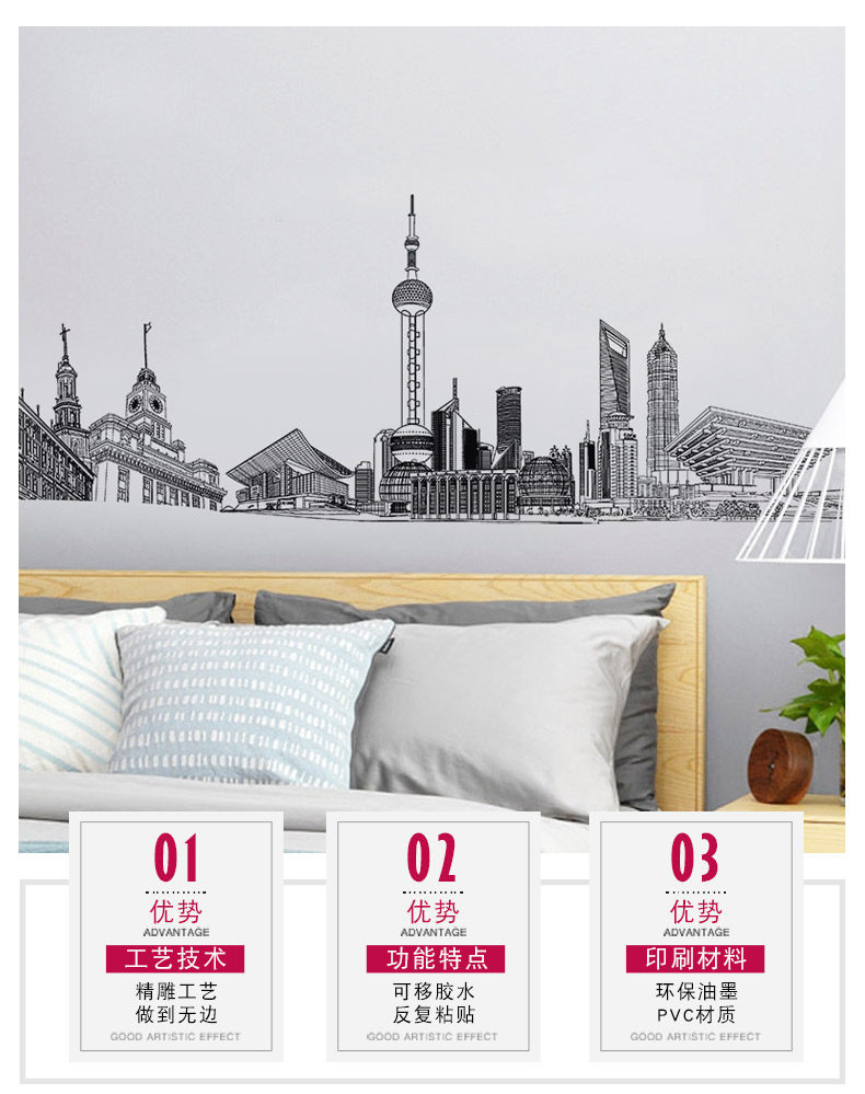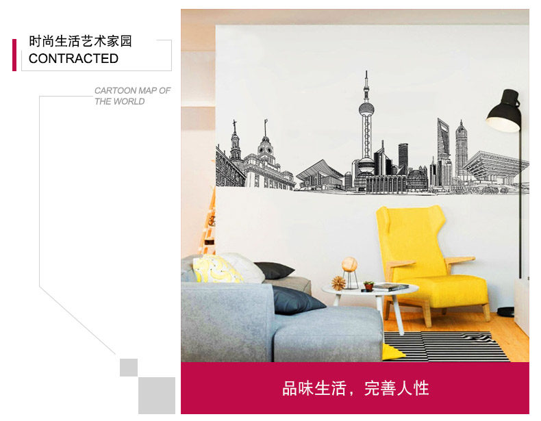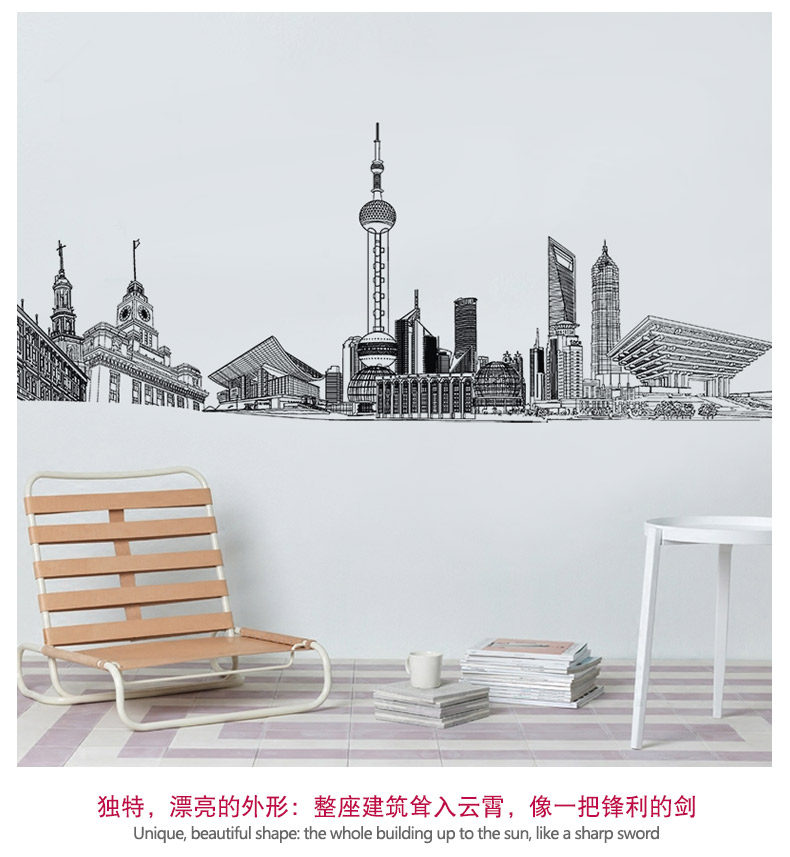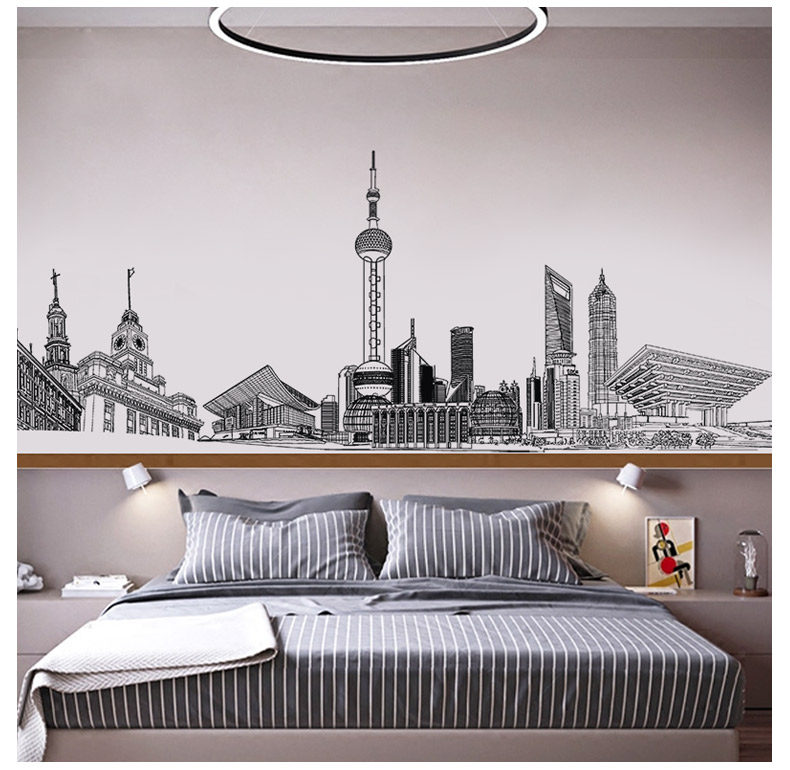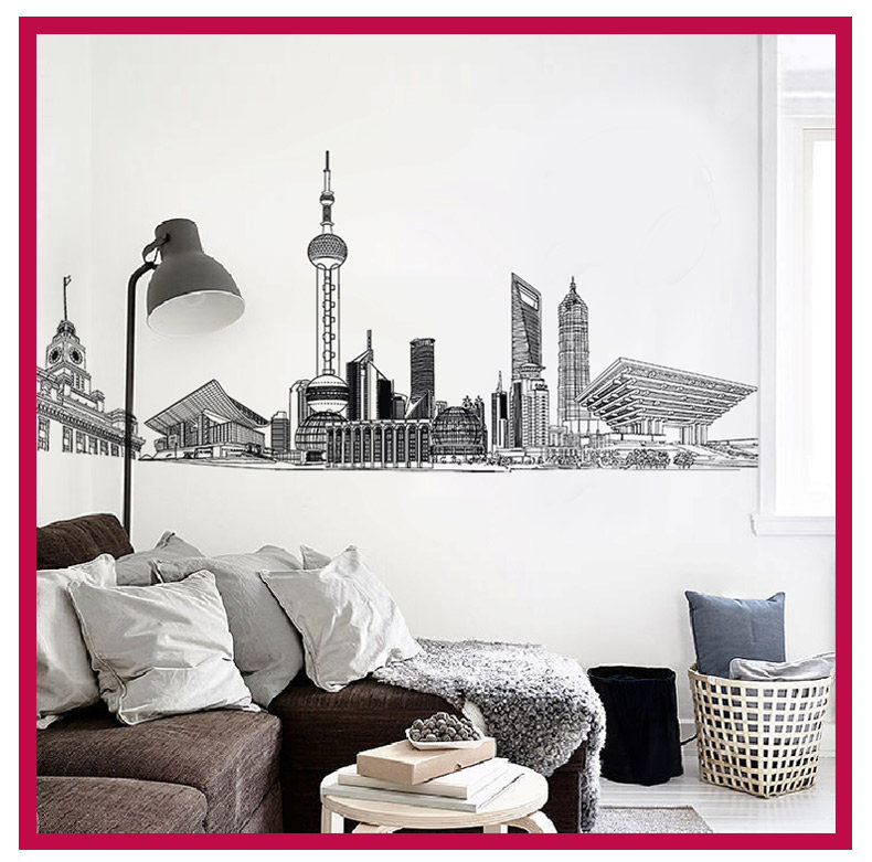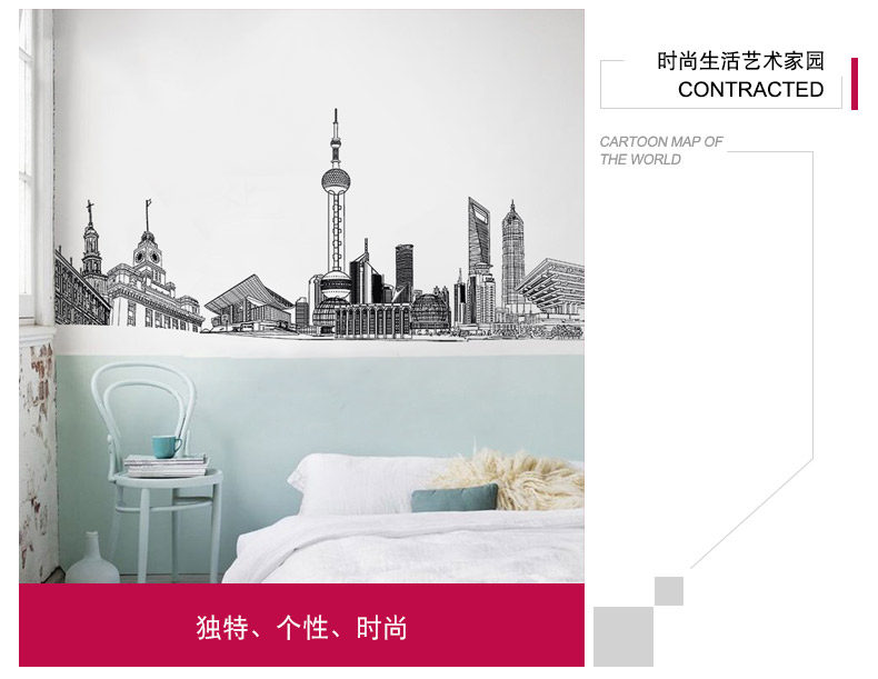 城市建筑贴画房间装饰宿舍寝室壁纸防水贴纸客厅墙上墙纸自粘墙贴