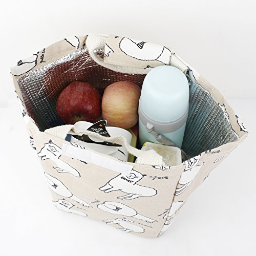 -. Feature : ❤LARGE CAPACITY: 9.1Lx6.7Wx10.6H inches. This lunch tote is so great for carrying large amounts of food, even could contain the whole day food which you need, and it is also suitable for work, travel, school, etc. / ❤MATERIAL: 100% non-toxic, guarantee a premium quality safe product to carry your healthy food. Handmade eco-friendly canvas fabric with inner thick aluminum foil to keep food stay cool or warm. / ❤REUSABLE AND ECO-FRIENDLY: Forget wasteful plastic or paper bags! Use your favorite food and take it with you to the office, grocery store, picnics, concerts, BBQ, beach, wine and cheese parties, camping, etc. It is also a great sundry bag, shopping bag, grocery tote, school tote, lunch bag, or simply use it as a grab-and-go purse. / ❤SIMPLE AND STYLISH P.R.INTING: Many flowers, flamingos and cartoon design, and this lunch bag can be a beautiful and functional decorations as well. A fashionable way to carry meals, snacks, drinks, and it is also a perfect gift for women, men, adults, kids, girls, boys. / ❤SATISFACTION GUARANTEE: We have made the best lunch bag available in a variety of wonderful colors. The lunch bags have heat preservation, cold, fresh function, when you go to market, can be used to pack frozen food, hot pot dishes, frozen drinks, dairy products, etc. However, if you are not completely satisfied with our lunch totes, simply return them within 30 days for a full refund or contact us.