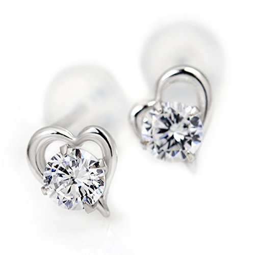 -. Title : Pt900 プラチナ オープンハート ピアス スタッドピアス 両耳用ペア 4月誕生石キュービックジルコニア