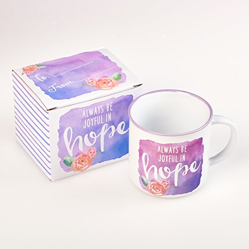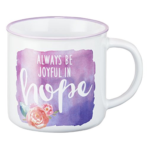 Featuring a colorful design, this Christian mug displays the ''Always Be Joyful in Hope'' quote
