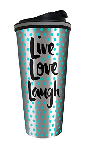 Spoontiques 20809 Live Love Laugh Stainless Steel Travel Mug, Silver
