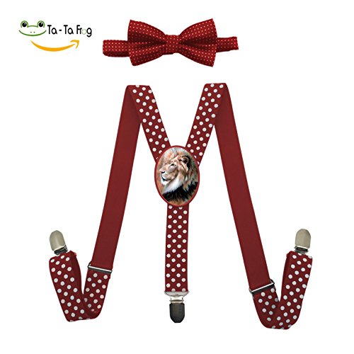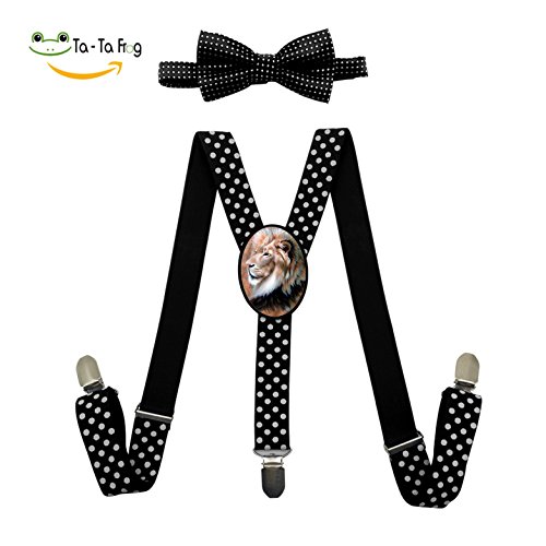 (Sans Bendy's Suspenders)/Accessories/Suspenders Cummerbunds/DIRECT FROM USA/Custom Watercolor lion Y-Back Clip Suspender with Bowtie Set Adjustable for Kids