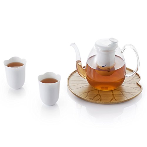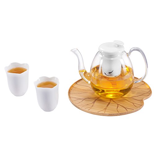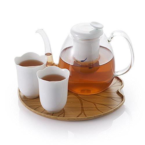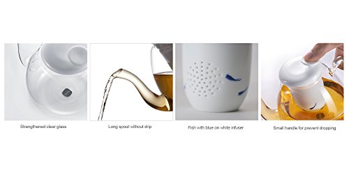 Studio : ZENS Publisher : ZENS Product Description Description Why do we use glass teapot Display teas: Anyone who has watched tea brewing knows how fascinating this is. I'm not talking about the tea fanning that is often sold in supermarkets as"tea"; rather I am talking about whole loose leaf tea. It starts off small and slowly unfurls into whole tea leaves while the tea is brewing. Additionally, flowering teas (blooming teas) are even more unique with the leaves hiding flower petals that both open to a magnificent display. How better to watch this magical process than with a glass teapot. That's not to mention the vast variety there is when it comes to the color of brewed tea ranging from the dark black teas, to the golden oolongs and the light green teas. You can see it all through a glass teapot. 5 Reasons I Use Glass Teapots They Look Great! they Keep Tea Warm they are Easy to Clean Perfect for Displaying Tea Visual Guide to Brewed Tea NOTE: Package Contents: 1 pc Glass Teapot: 8.31*5.15*5.46 inch, 49.38oz(1400ml) 1 pc Porcelain Lid: Diameter 3.04*1.13 inch 1 pc Porcelain Infuser: 2.73*3.74 inch, 6.35oz(180ml) 2 pcs Porcelain Cups: Diameter 2.81*3.51 inch, 7.05oz(200ml) for each 1 pc Bamboo Tray: 11.39*7.10*0.70 inch WARRANTY Please contact Seller through Amazon email for any questions or concerns to ensure 100% satisfaction guarantee.