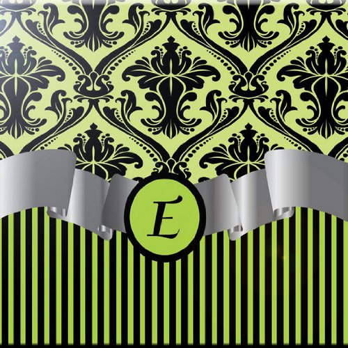 Rikki Knight RK-12intilec-2085 12" X 12" Letter "E" Lime Green Damask Stripes Monogrammed Design Ceramic Art Tile